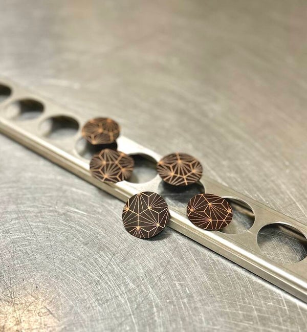 I DECOPRODUCT sono stencil in acciaio inox di svariate forme con la quale è possibile creare decorazioni in Cioccolato, pasta sigaretta o altri composti in modo rapido